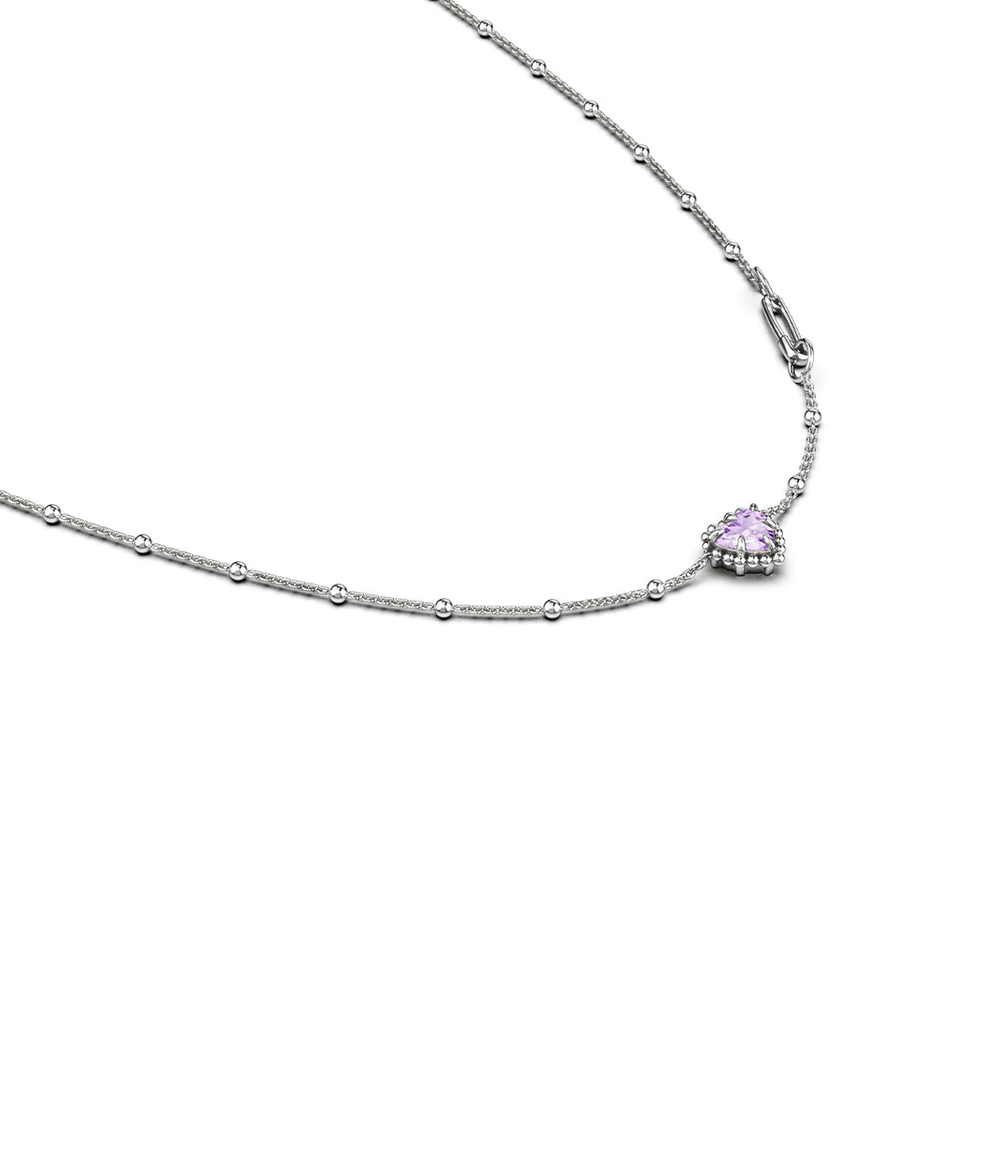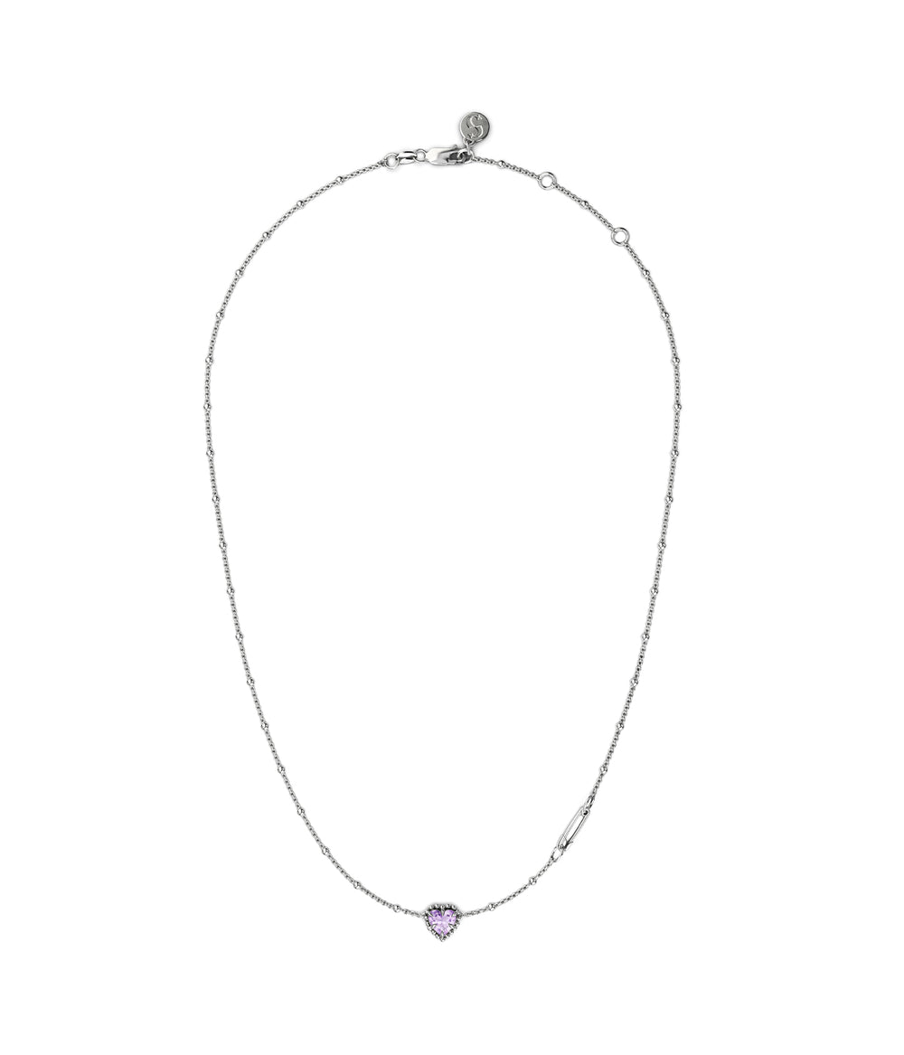 Stolen Sterling Silver Dahlias Heart Necklace with Pink Amethyst