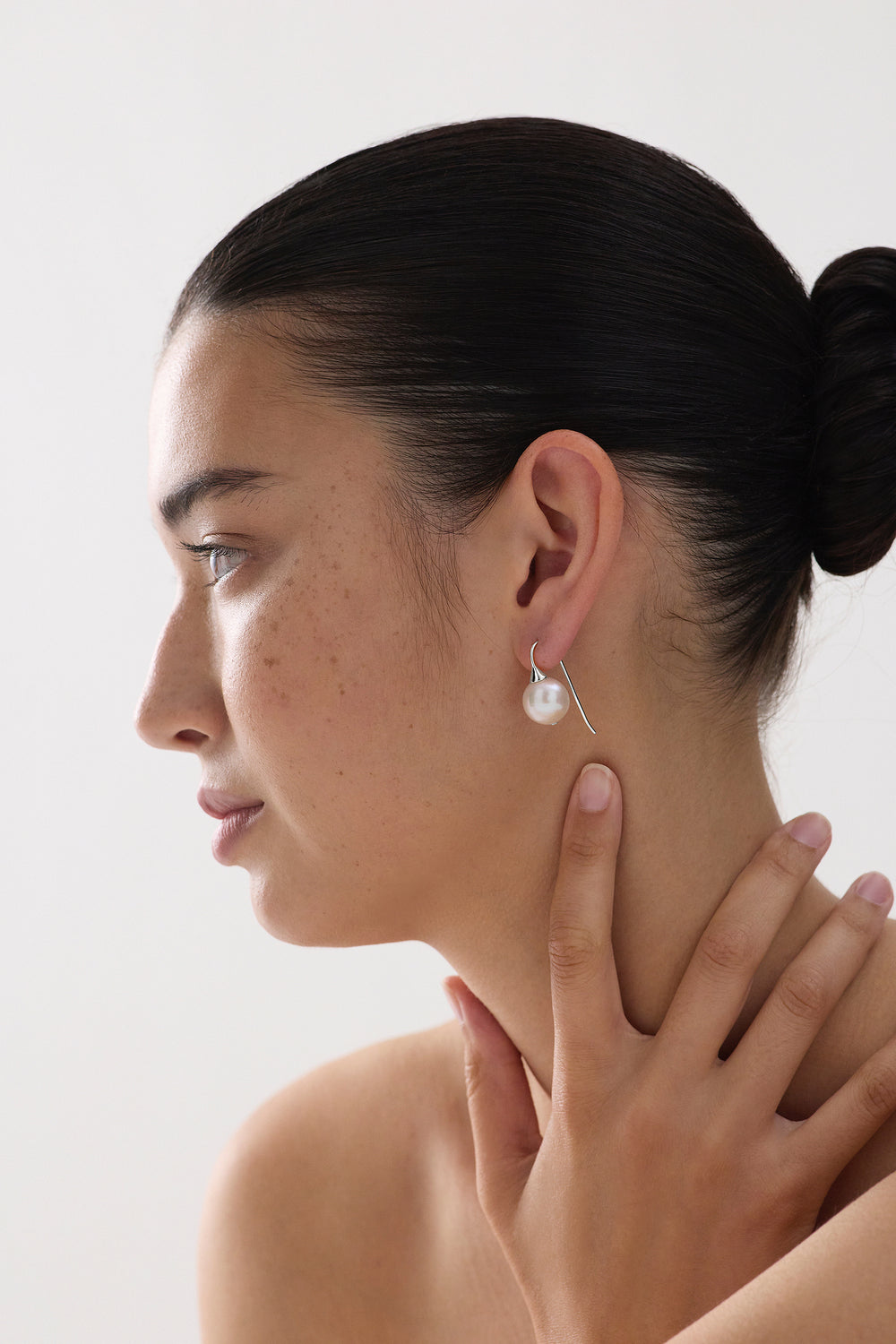 Najo Mariselle Silver Crescent with Pearl Earrings