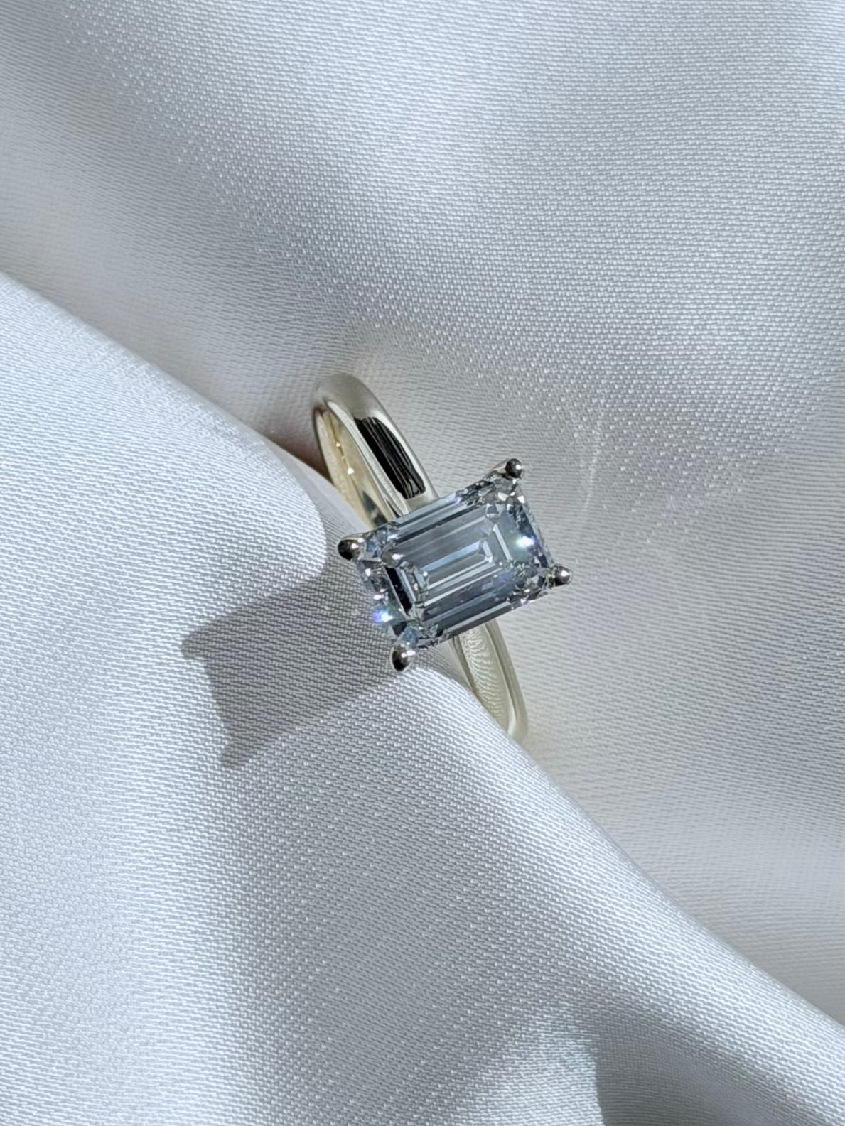 Featuring a striking 2ct lab-grown emerald cut diamond, this ring is set on a sleek 9ct yellow gold band for a refined, timeless finish. The emerald cut’s crisp facets create a sophisticated, mirror-like brilliance, celebrating clarity and proportion.