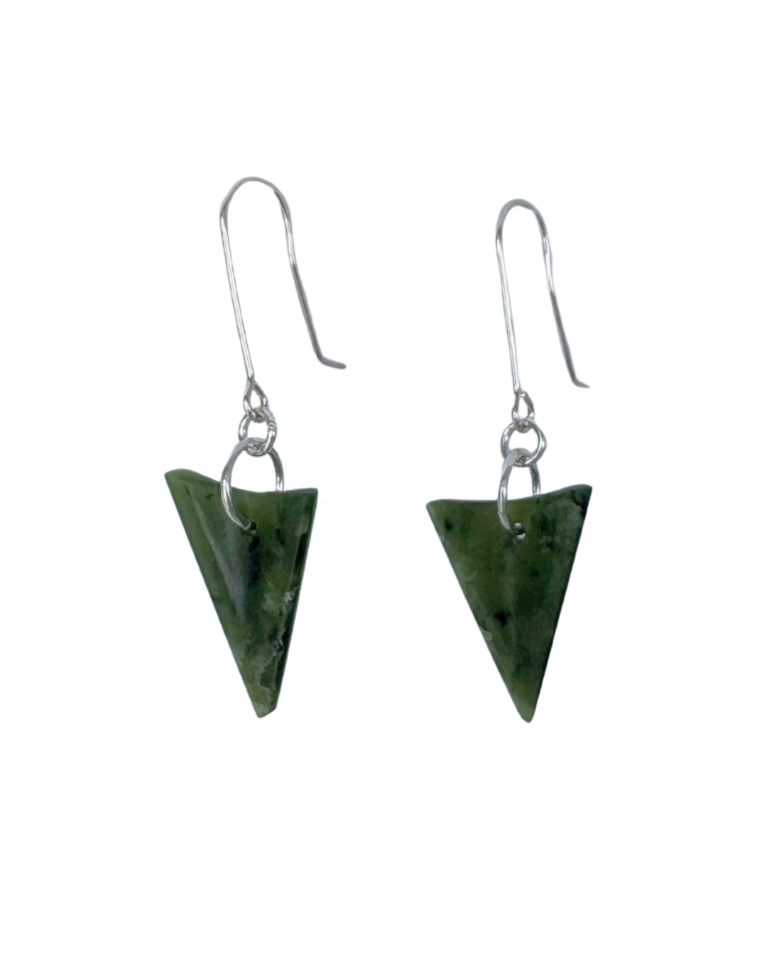 New Zealand Greenstone Arrow Head Silver Earrings