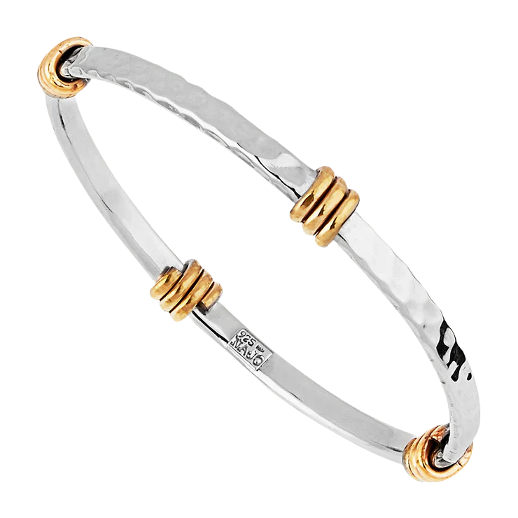 With its touch-me texture and soft metallic hues, the beautiful Amarres always makes a sophisticated statement. Tumbaga twines give this stunning hand-beaten sterling silver bangle a wear-with-everything dual tonality you'll cherish. Flaunt it solo or create a sublime stack with its wider Amarres sister.