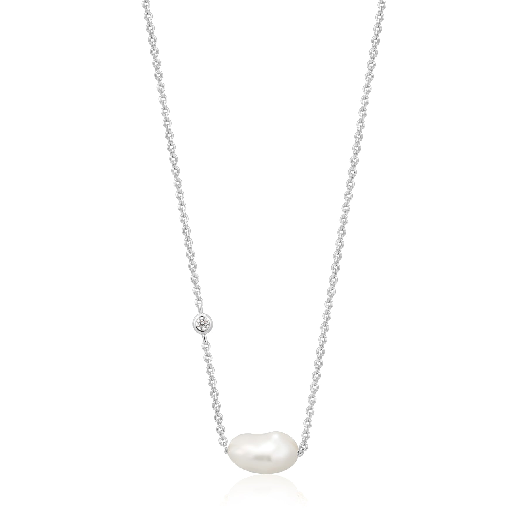 When super simple just isn’t enough. Discover this stunning pearl necklace, finished with a uniquely-shaped baroque fresh water pearl that speaks for itself. Sat stylishly on a delicate chain necklace, the pearl is paired with a single cubic zirconia stone, creating the perfect asymmetrical look. Inspired by the runway, this is your new everyday must-have.