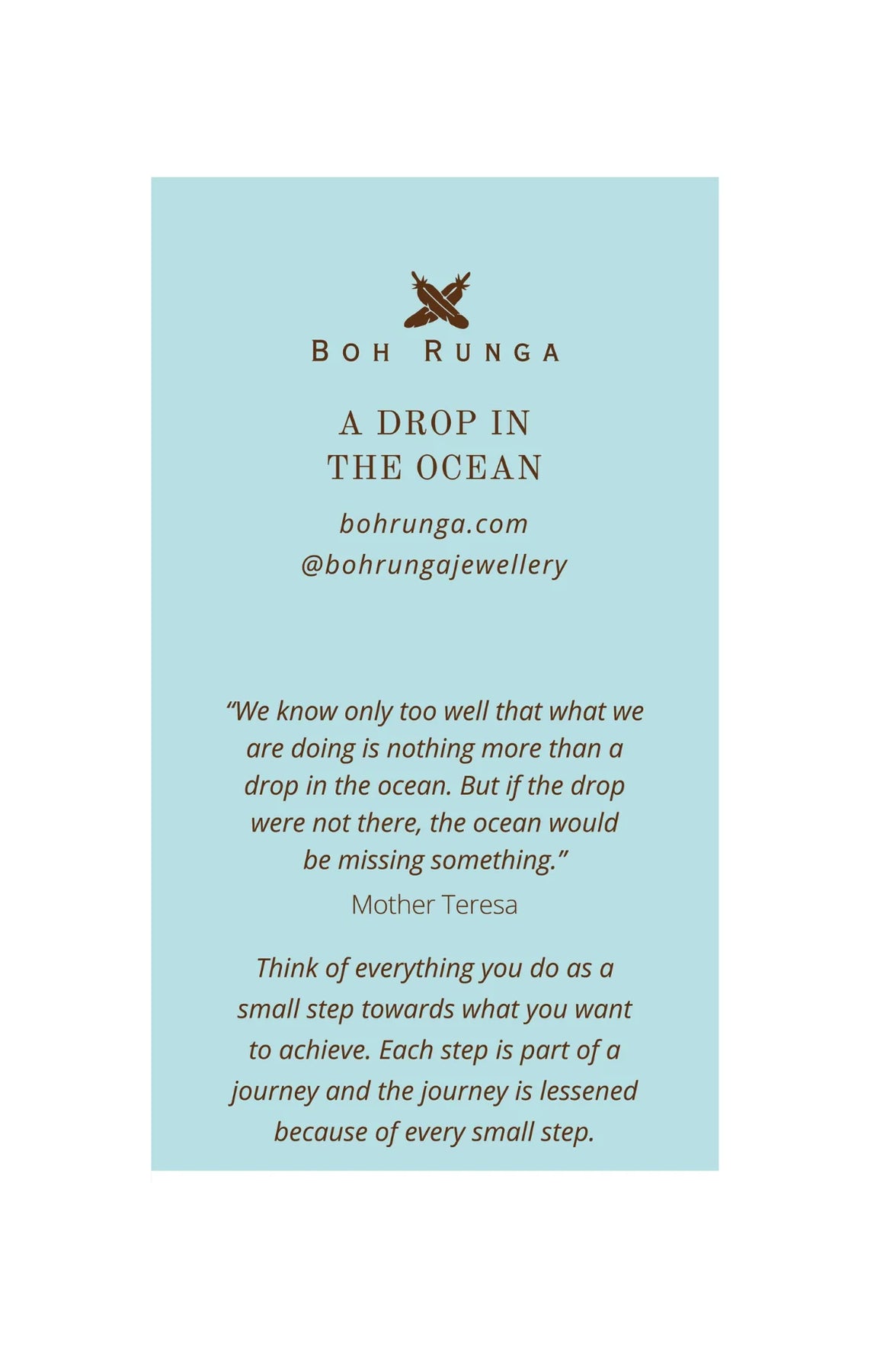 The Duette in Blue Topaz has the fine curves of the droplet snuggling up to a soothing blue topaz, reminding us of the sunny skies during summers by the ocean and our connection as an Island nation to the vast ocean that surrounds and sustains us.