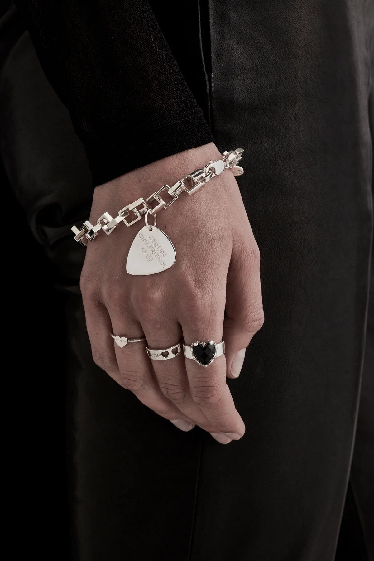 Our 'Death Metal Bracelet' is a tough-yet-beautiful, punk-inspired take on the classic charm bracelet. Made to make a statement, this bracelet is crafted from solid sterling silver with intricate square-chain detailing and a solid silver guitar-pic branded charm.
