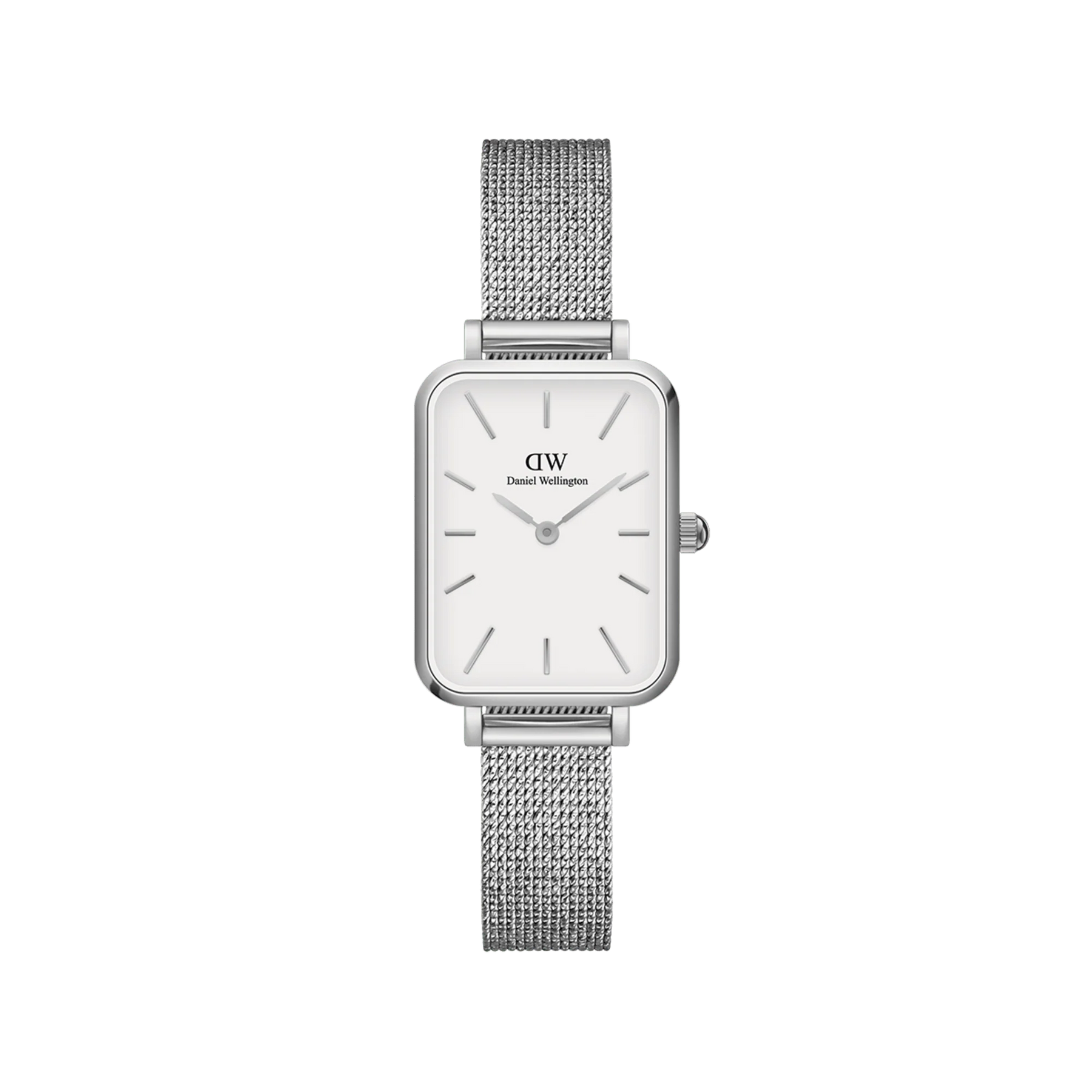 The Quadro is our first square dial timepiece. Crafted with polished stainless steel and available in a refined rose gold plating or vibrant silver finish. Choose between the option of a white, black, or green patterned dial and a selection of pressed mesh or pressed leather straps. Elevate your look with a unique edge.