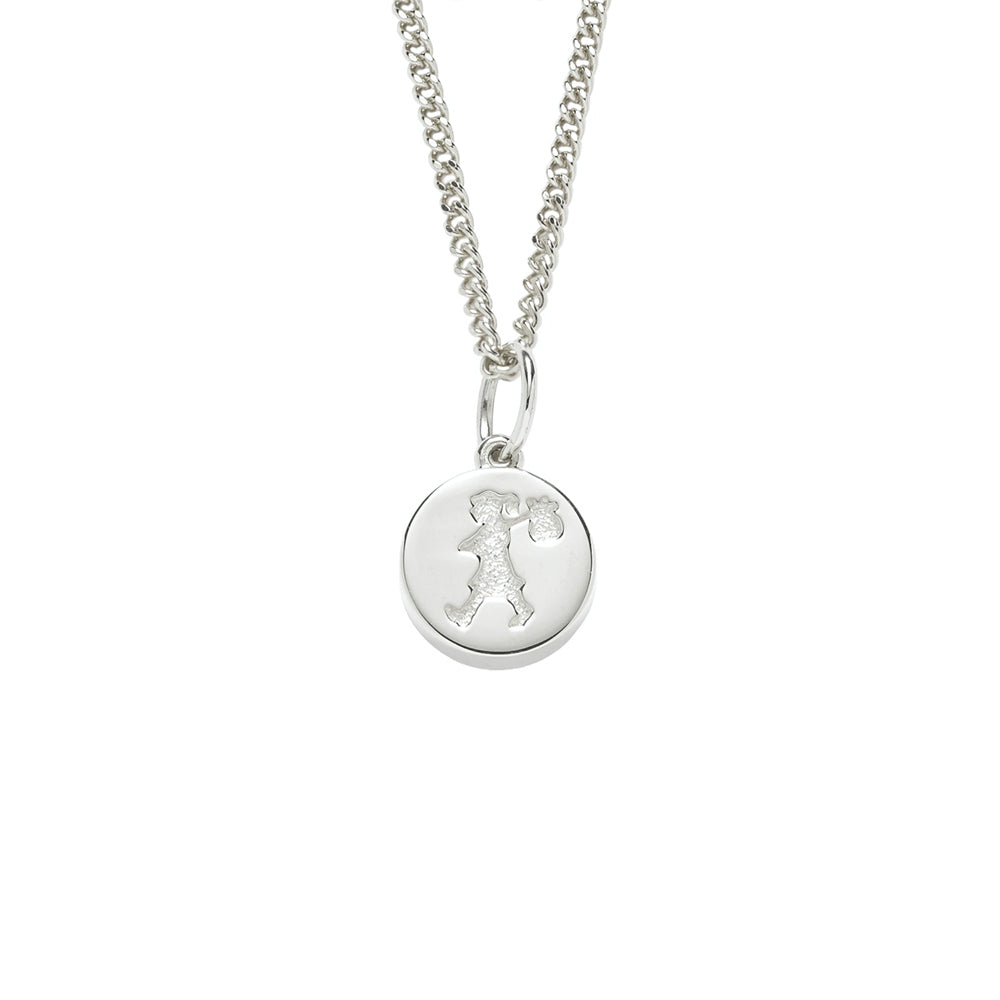 Karen Walker Jewellery’s Runaway Stamp Necklace is a petite spin on the classic Runaway Girl that has been a well-known icon of the Brand since 2002, and a symbol of adventure, independence and intrepidity.