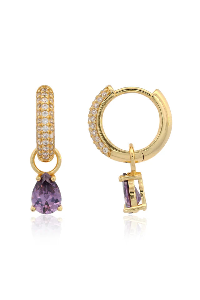 Georgini Wisteria Duo Pear Earrings Amethyst CZ Gold