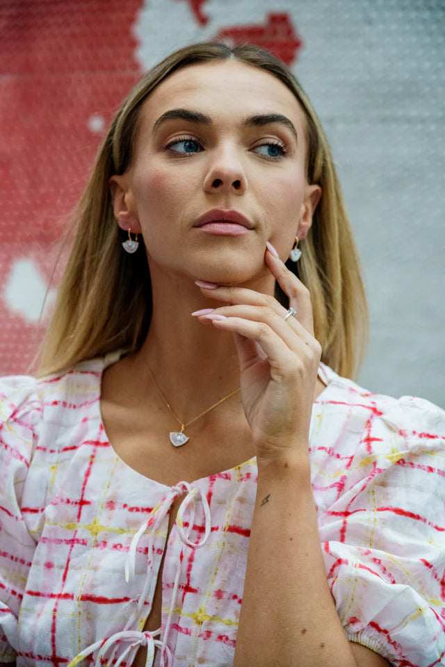 With its unique blend of natural beauty and radiant sparkle, the Mother of Pearl Fan Pendant makes a sophisticated statement and is perfect for layering or wearing alone. Match with the Mother Of Pearl fan earrings to elevate your jewellery collection with this stunning piece that effortlessly combines style and elegance.