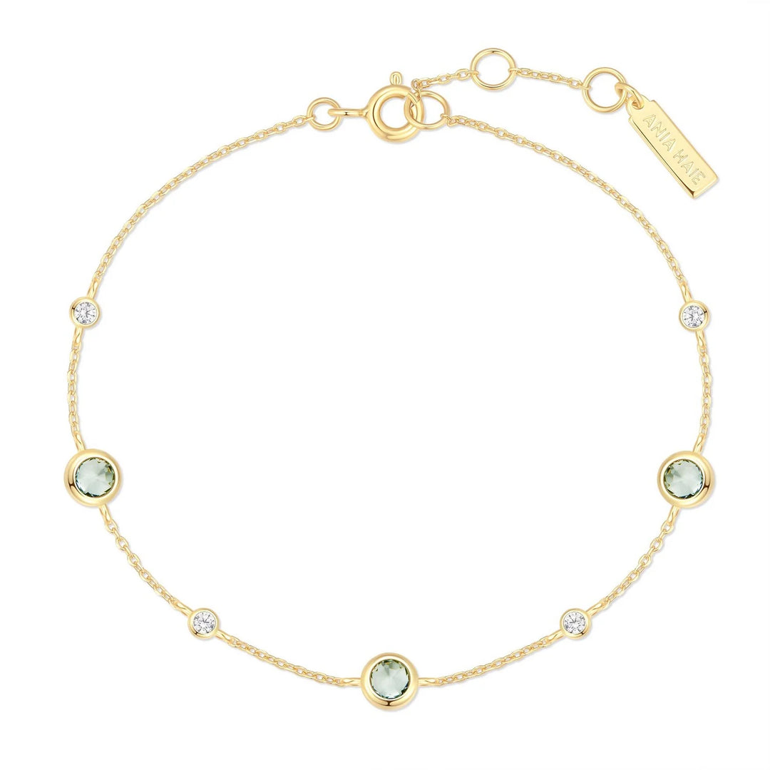 Ania Haie Ripple Gold Plated Green CZ Station Bracelet