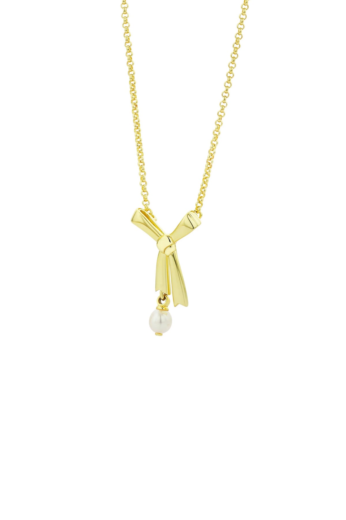 Gold Plated Pearl Bow Necklace 45cm