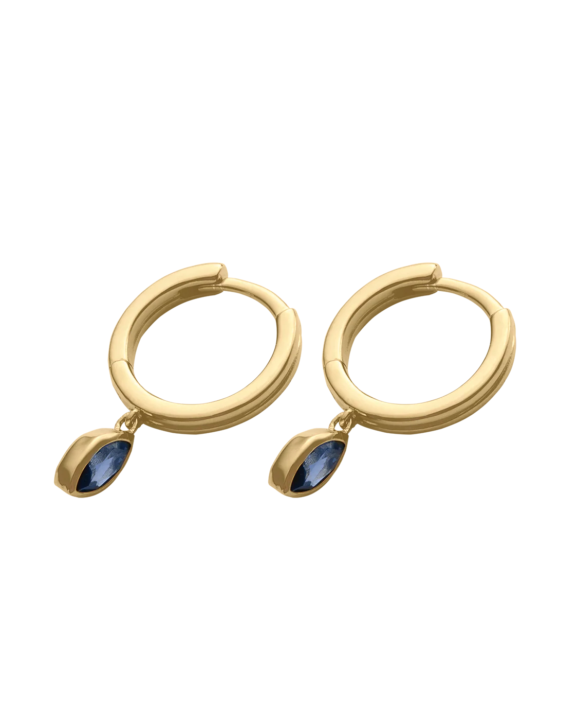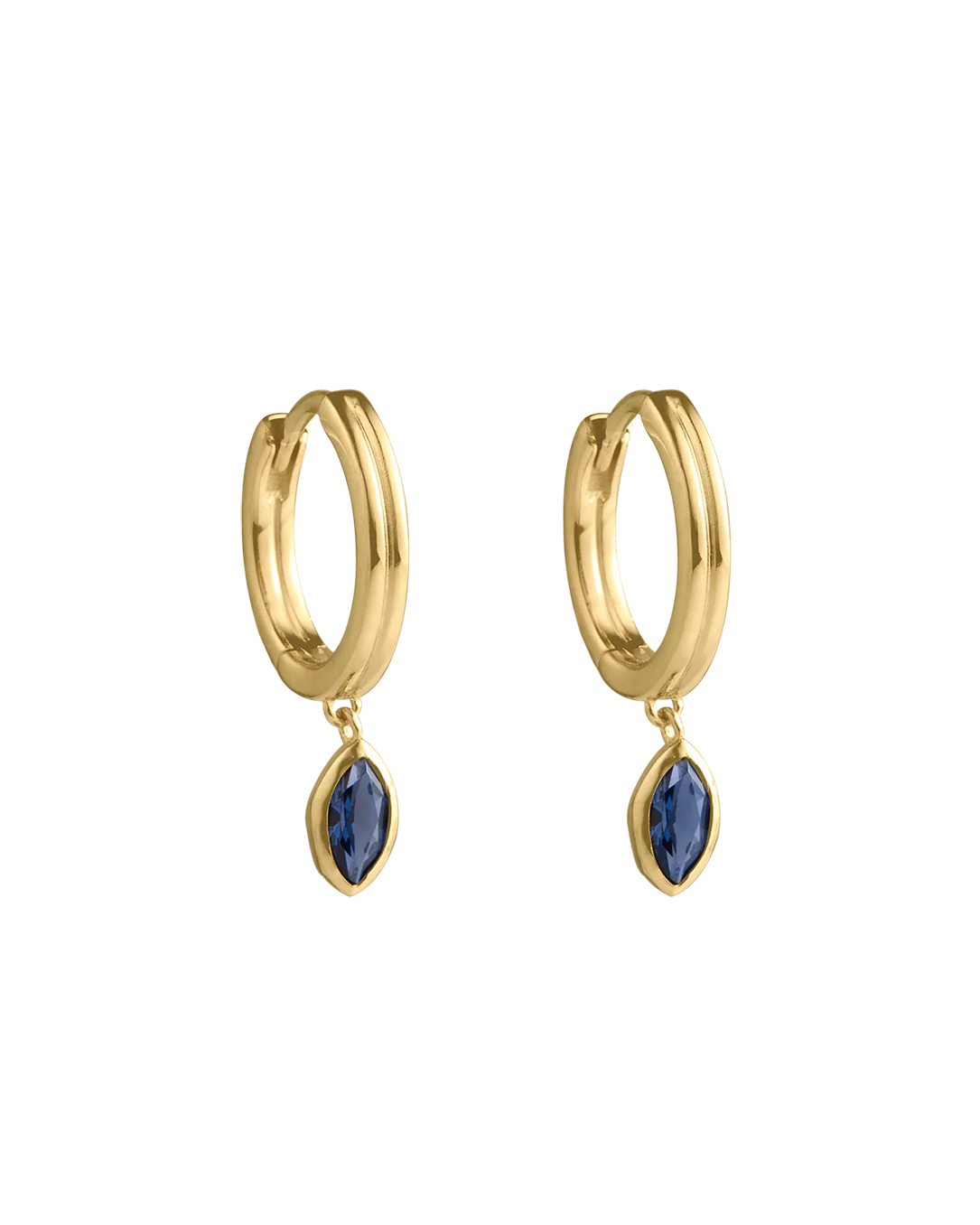 With a single marquise-cut blue sapphire nano stone suspended below each hoop, the Ink Drop Hoops offer fluidity in form and movement. Available in 18k gold plated or silver, these dainty drops are designed for subtle impact.