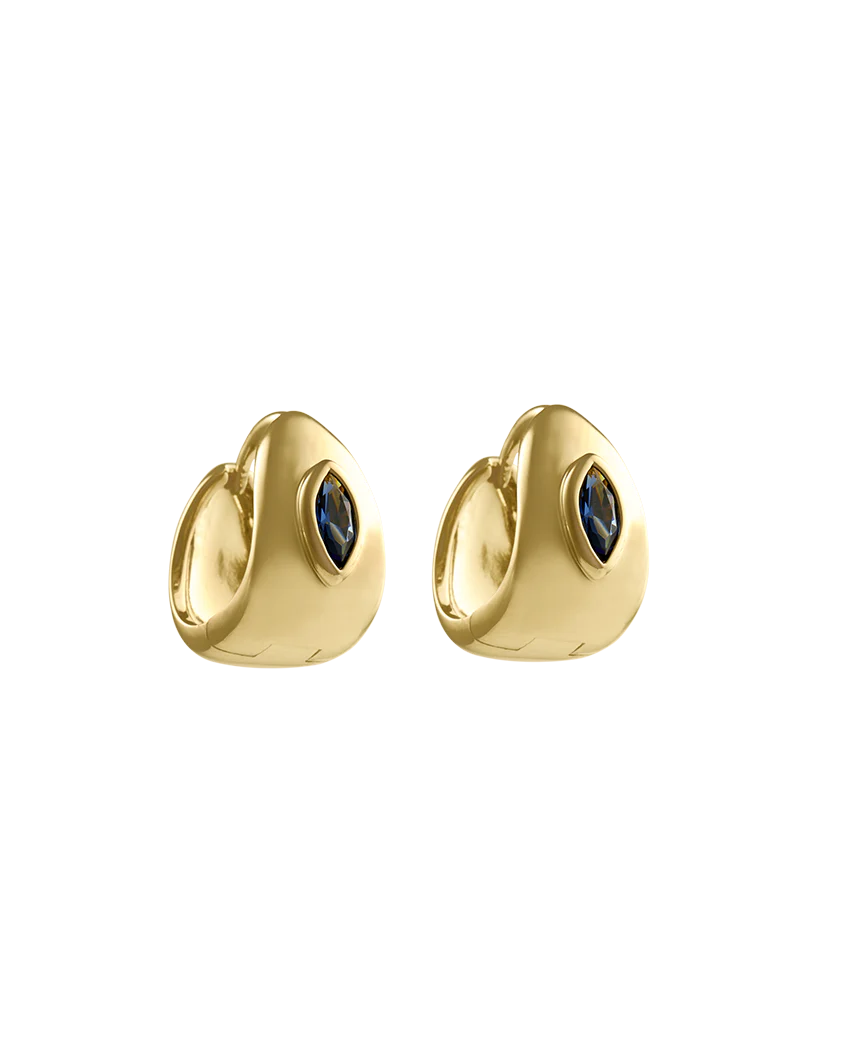 Bold yet refined, the Ink Hoops feature a chubby dome silhouette with a marquise-cut blue sapphire nano stone as the focal point. Available in 18k gold plated or silver, they’re perfect for making a statement