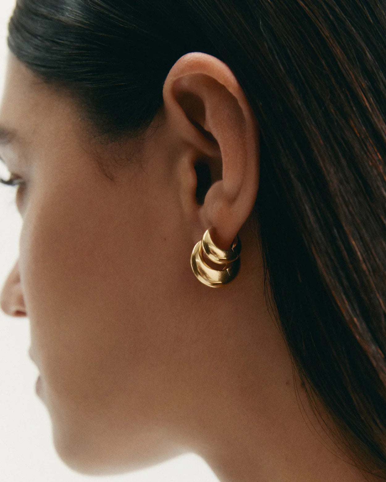 Balancing everyday ease with polished refinement, the Indigo Hoops Small features a dome-like design. Available in 18k gold plated or silver, they’re perfect for stacking or stand-alone wear.
