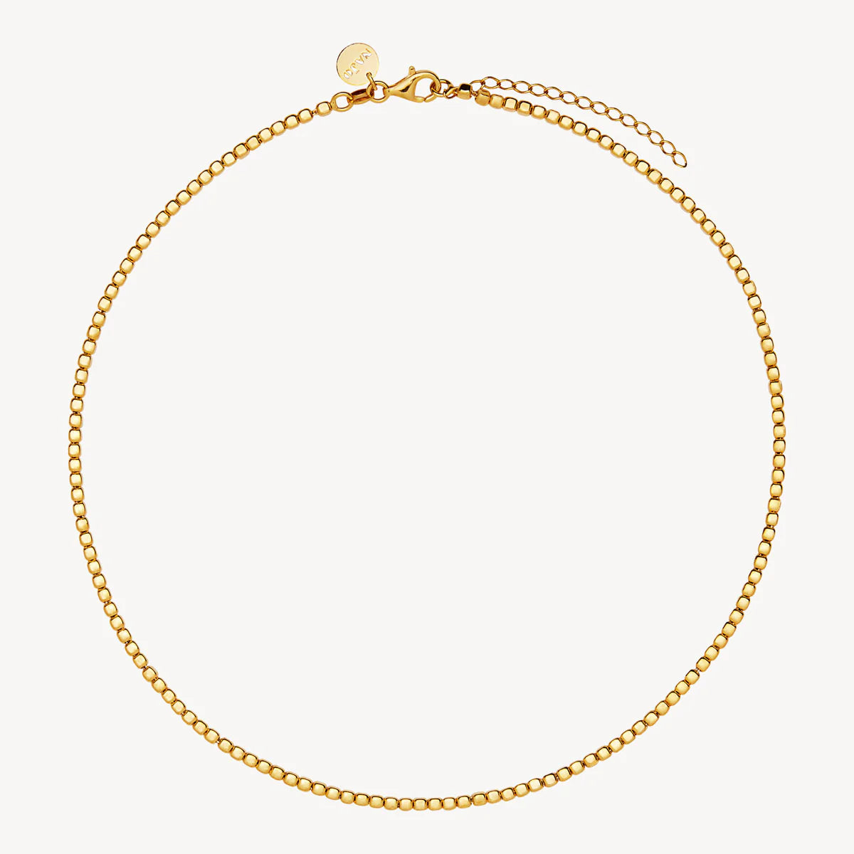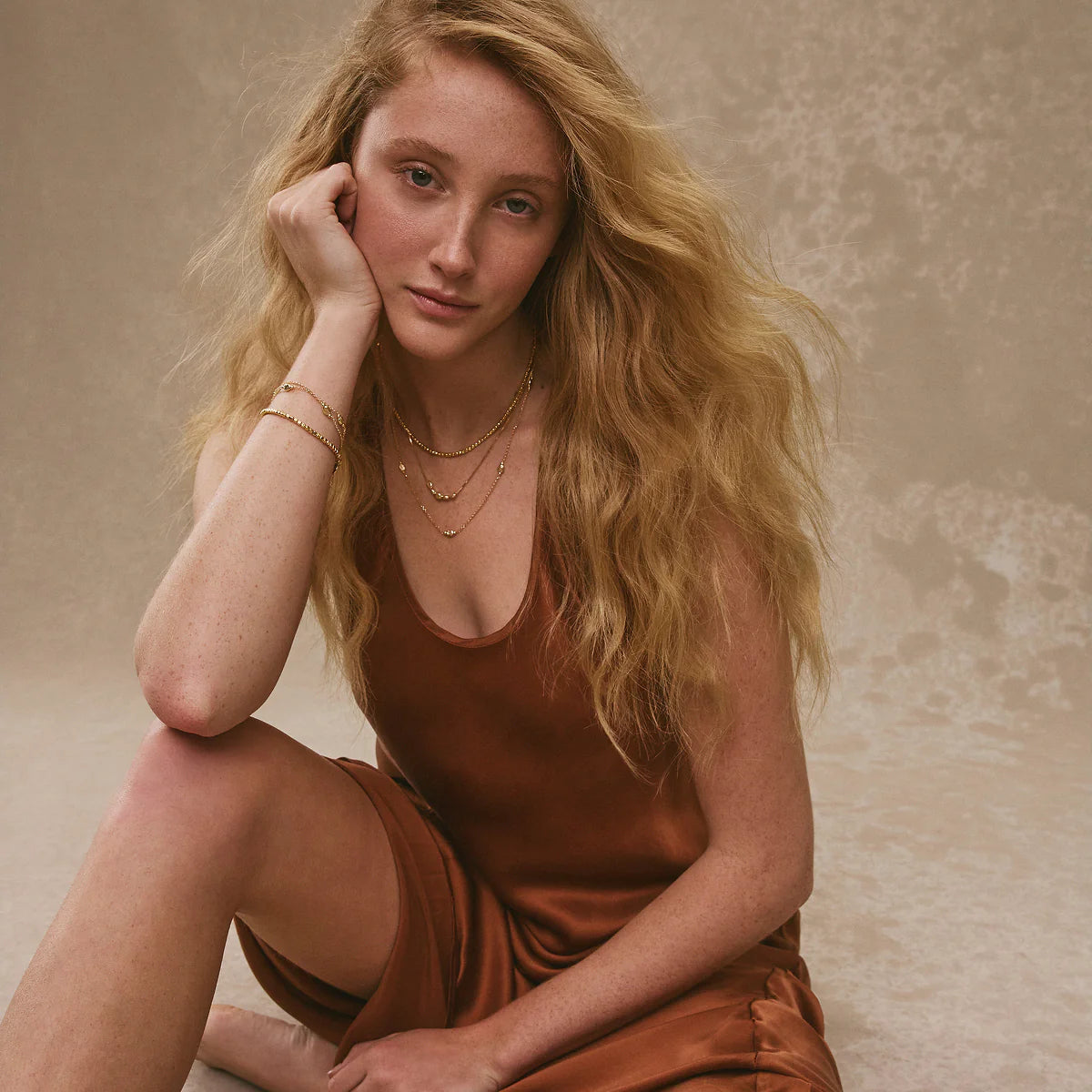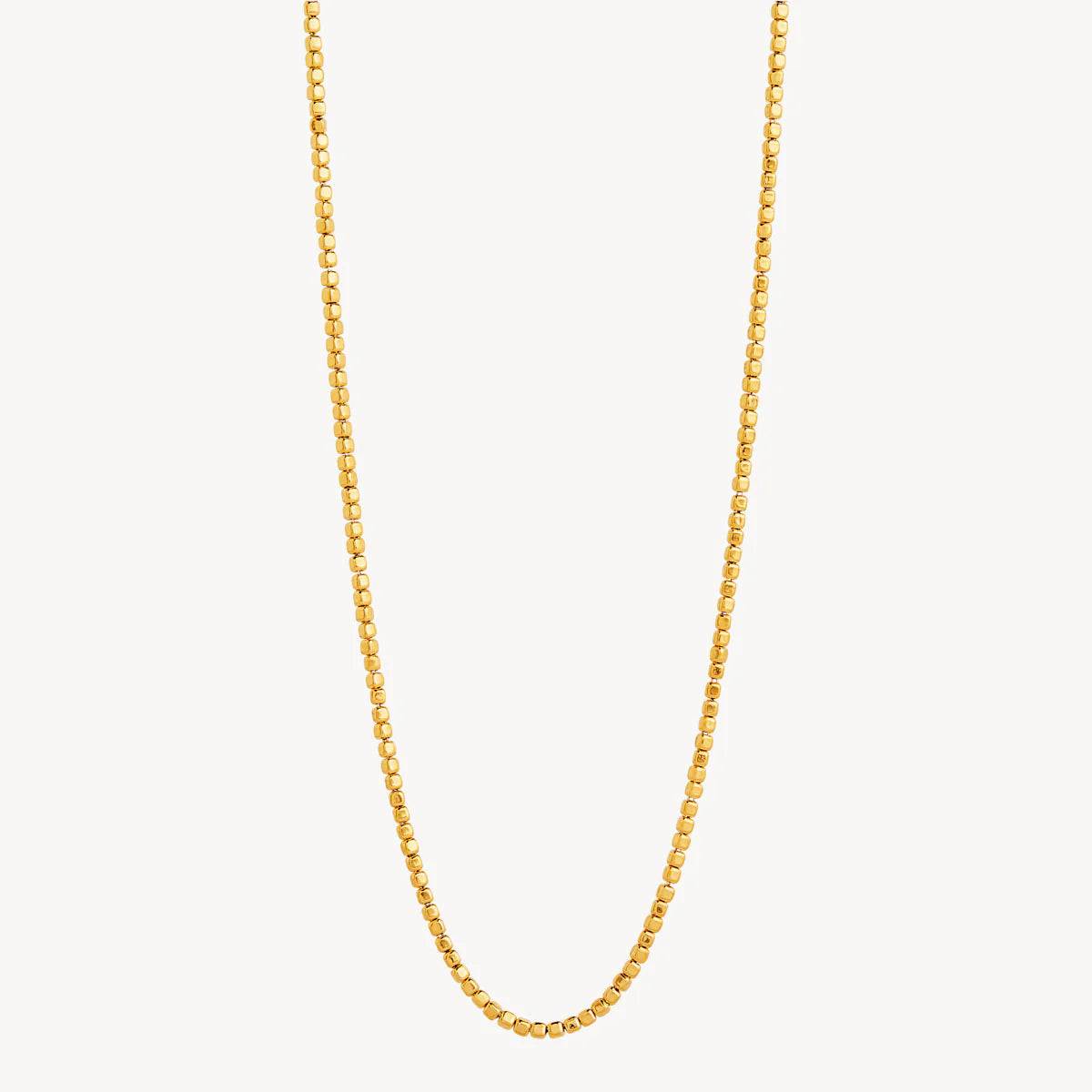 The structured yet fluid Quadrille is composed of polished square beads threaded in rhythmic succession. Her sense of order is inspired by the geometry of Parisian gardens, where symmetry and intention shape even the wildest forms of nature. This quietly elegant creation is crafted by our Italian chain artisans with a generous extension for length play. Whether adorned solo or layered, the Quadrille is your reminder that personal style is curated, beautiful and expressive.