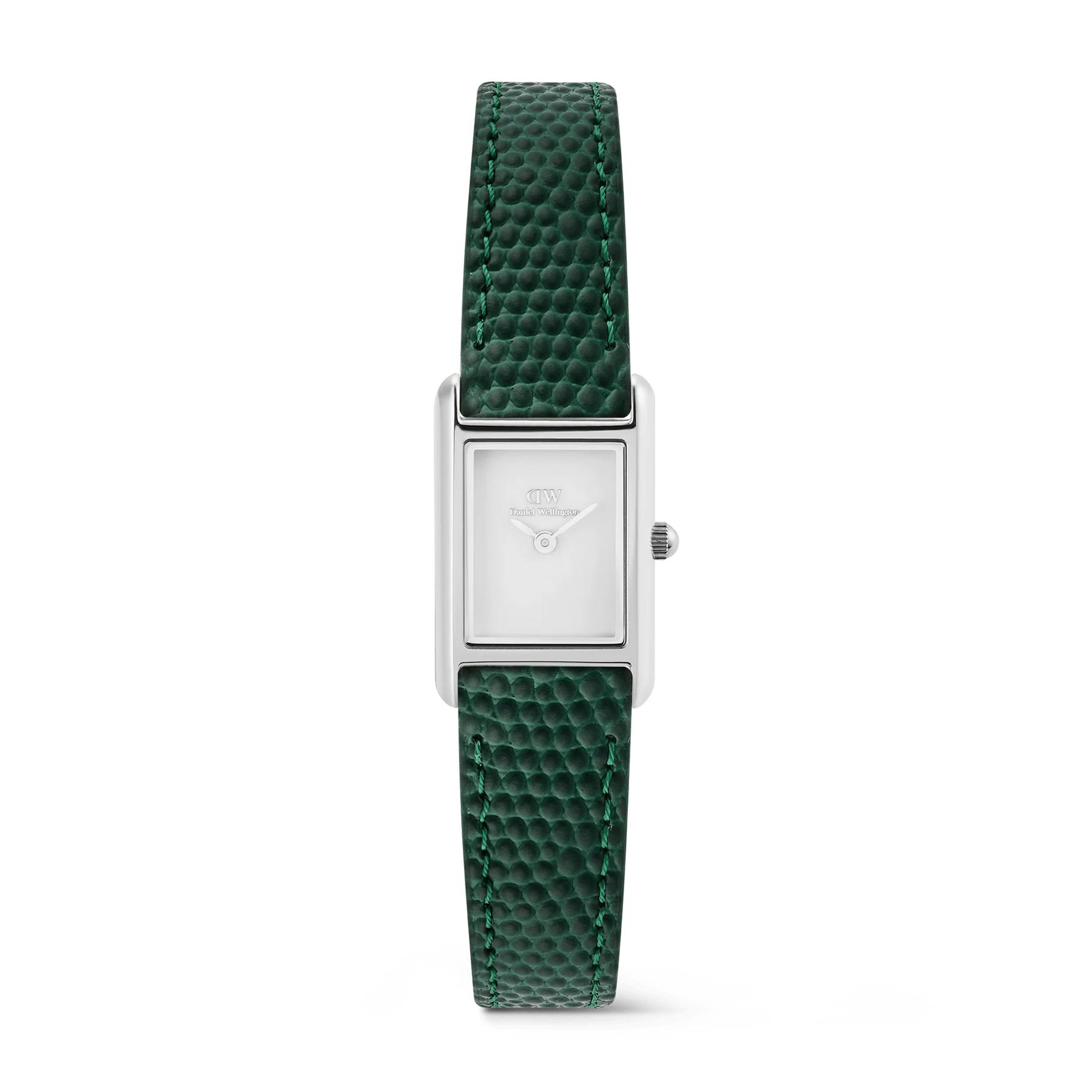 We designed the Bound Mini Green Lizard Silver as part of our Bound collection for those who favor a refined, compact profile. A crisp rectangular case in silver frames a clean white dial, creating a quiet statement that feels modern and timeless. The petite silhouette sits light on the wrist and complements minimal style.The green, lizard-embossed genuine leather strap adds depth and a subtle touch of color. Finished with a polished pin buckle, it pairs effortlessly with tailored looks and relaxed outfits alike. If you prefer understated detail, this leather strap delivers texture without distraction.When it is time to celebrate a birthday, graduation, Valentine’s Day, Mother’s Day, or Christmas, this watch makes a thoughtful gift. Its rectangular shape, white dial, and green leather offer a distinctive yet versatile combination that feels personal and considered.We craft the case from 316L stainless steel and finish it in polished silver for lasting clarity. A reliable Japanese quartz movement keeps everyday time with precision. The genuine leather strap is carefully cut, embossed, and stitched for comfort and durability. Every detail is refined to serve daily wear and special moments.