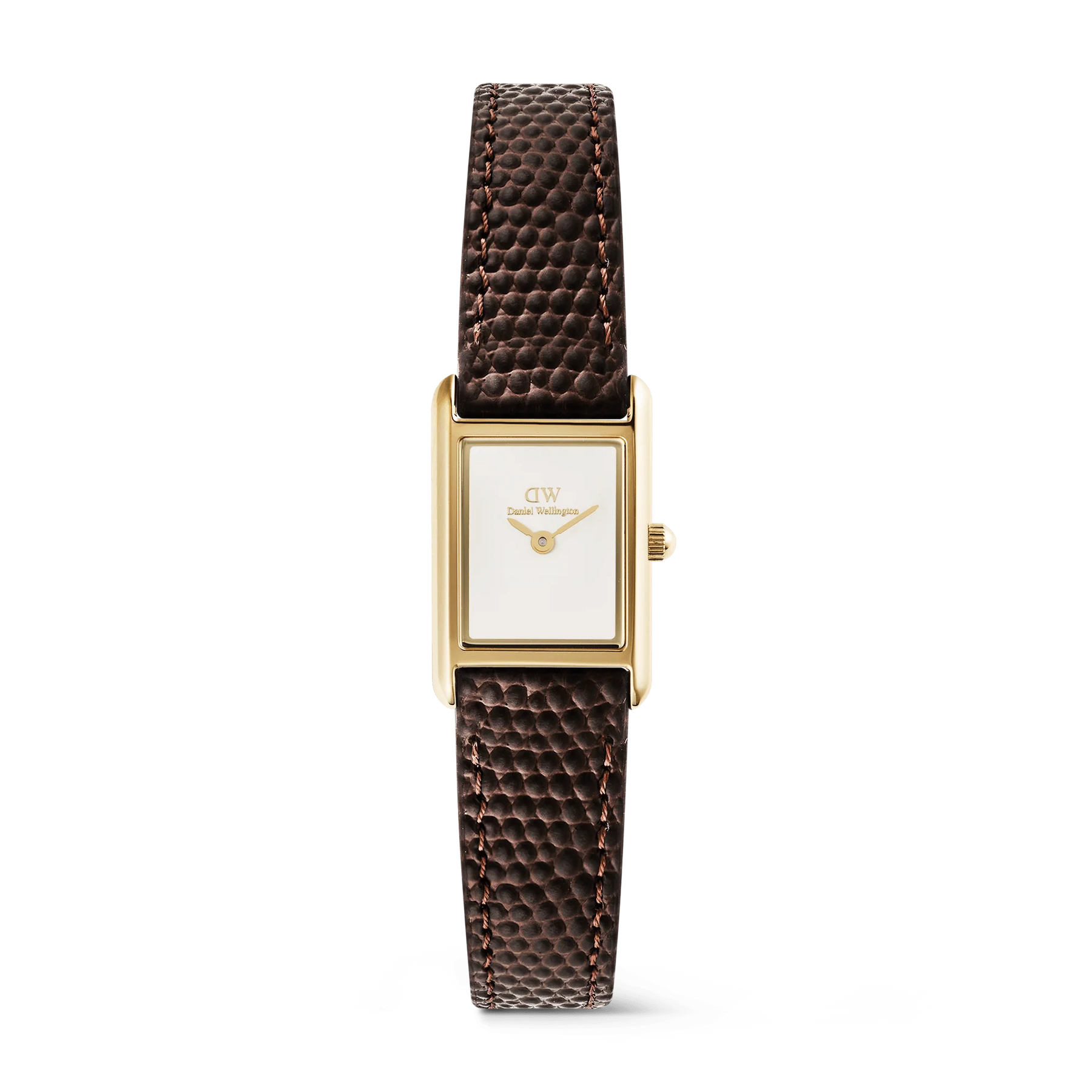 The Bound Mini Lizard brings a refined balance of form and texture. A compact rectangular case in gold frames a clean white dial, paired with a dark brown lizard-textured genuine leather strap. Its petite profile sits softly on the wrist and adds quiet confidence to everyday style. We designed this watch for those who appreciate subtle details. The lizard-grain leather offers depth without distraction, while the polished pin buckle secures a comfortable fit. The white dial keeps time clear and uncluttered, and the Japanese quartz movement delivers reliable precision day after day.When you wish to gift something thoughtful, this watch feels right. It suits birthdays and graduations, and it speaks warmly on Valentine’s Day, Mother’s Day, or Christmas. Its timeless palette of rose gold, dark brown leather, and a white dial makes it easy to wear and easy to love.We craft each piece with care. The case uses durable 316L stainless steel finished in rose gold, and the strap is genuine leather with a carefully embossed lizard texture. We refine the edges, test the movement, and ensure every element works in harmony. The result is a rectangular watch that feels considered, enduring, and beautifully made.