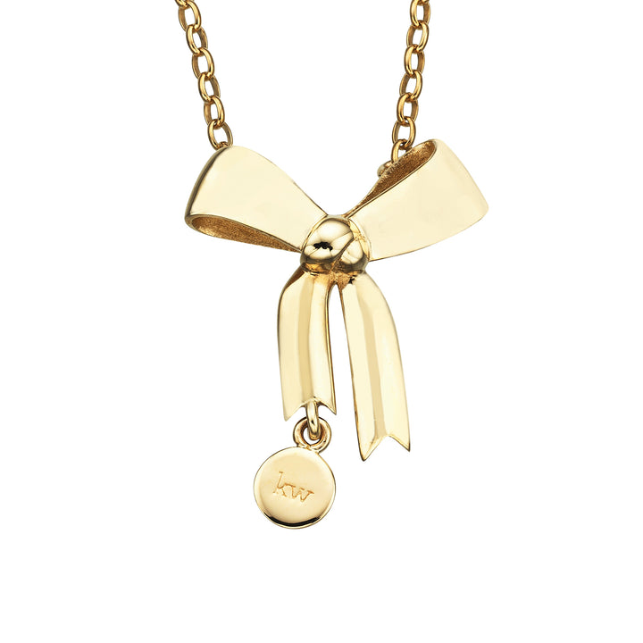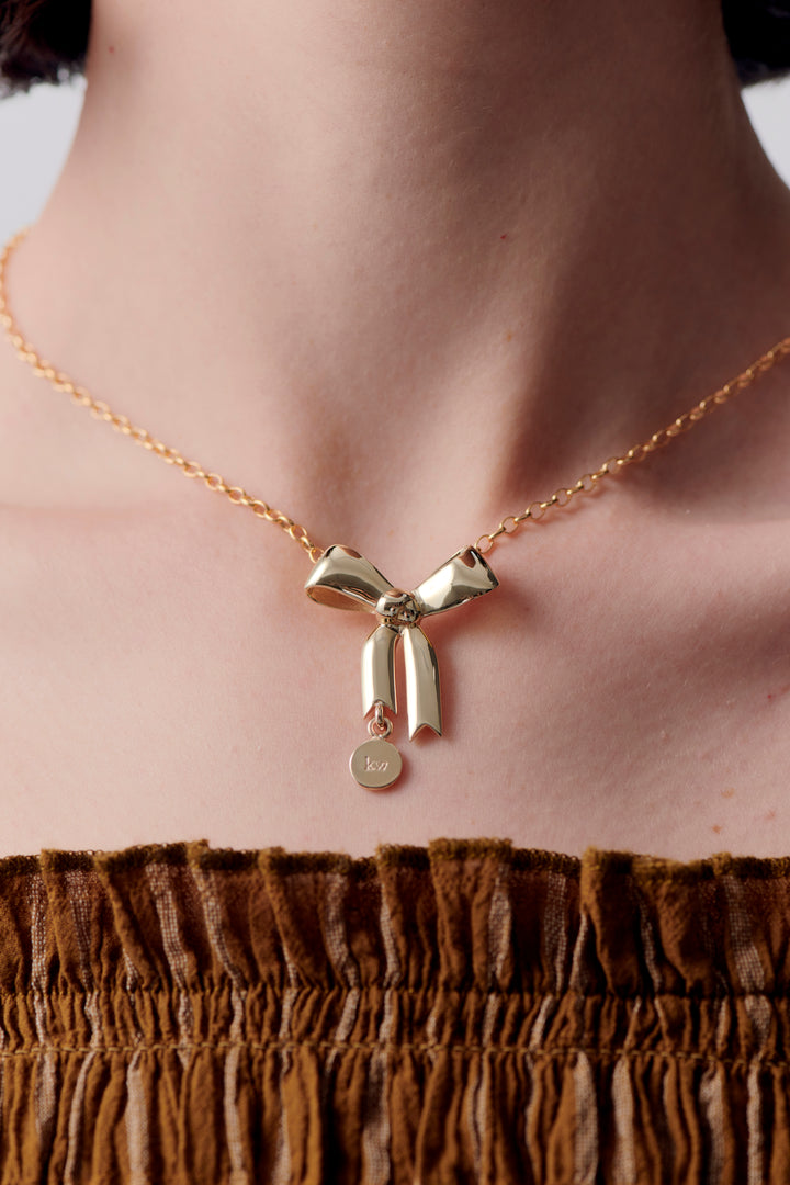 Infused with the brand's signature sense of whimsy, the iconic Karen Walker bow (tied just so) is suspended from equal lengths of oval belcher chain to create the Bow Pendant in divine Hard Gold Plate