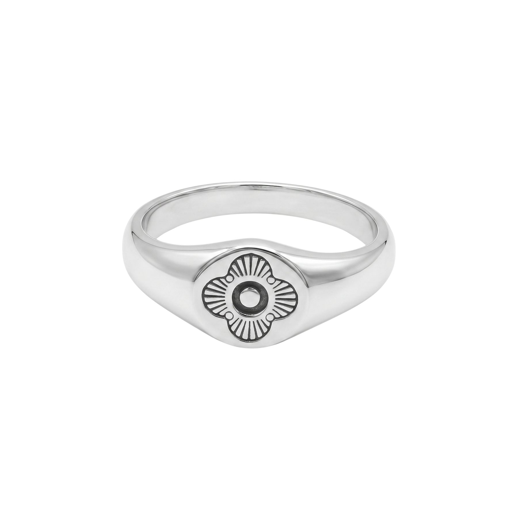 Elevate your everyday with this polished sterling silver signet ring, designed with a refined, modern edge. Featuring a smooth, high-shine finish and a distinctive engraved face, this piece blends classic signet styling with a contemporary twist.