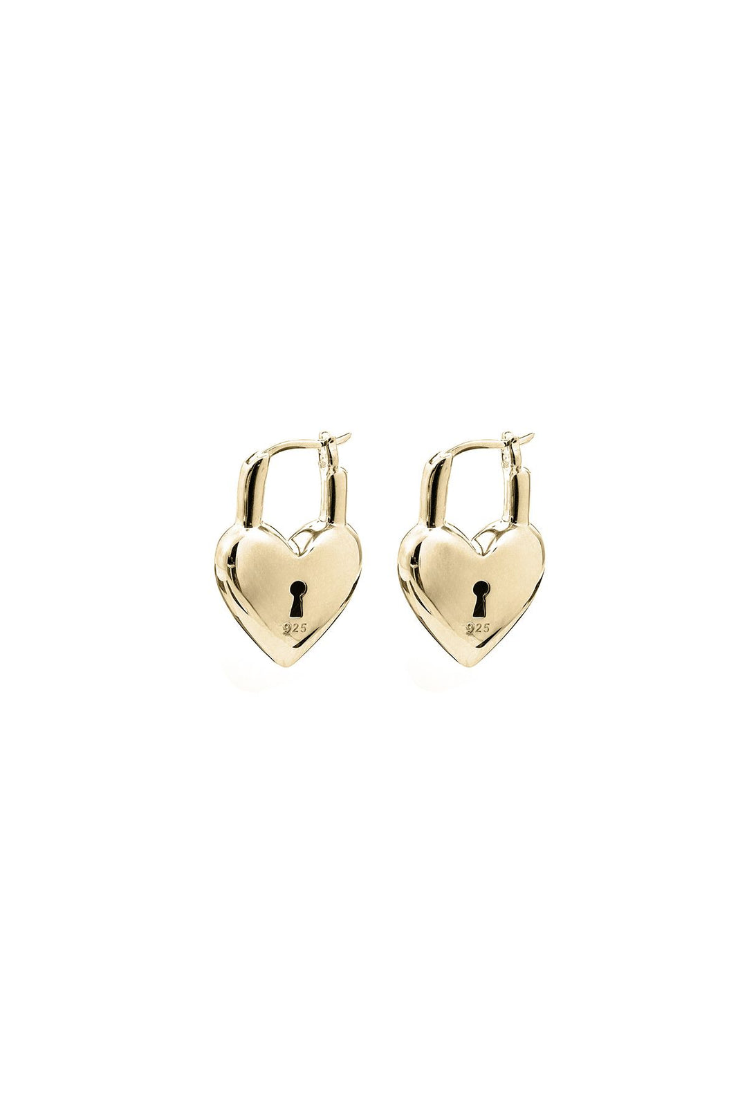 Our beloved puff heart charms reimagined as this pair of elegant huggie-style earrings. Featuring delicate script branding and a secret keyhole, they're crafted from solid sterling silver with 18kt gold plating. We’ve created our own specific tone of gold across our 18kt gold plated styles. This slightly paler hue is unique to Stolen Girlfriends Club, and is designed to complement every skin tone.