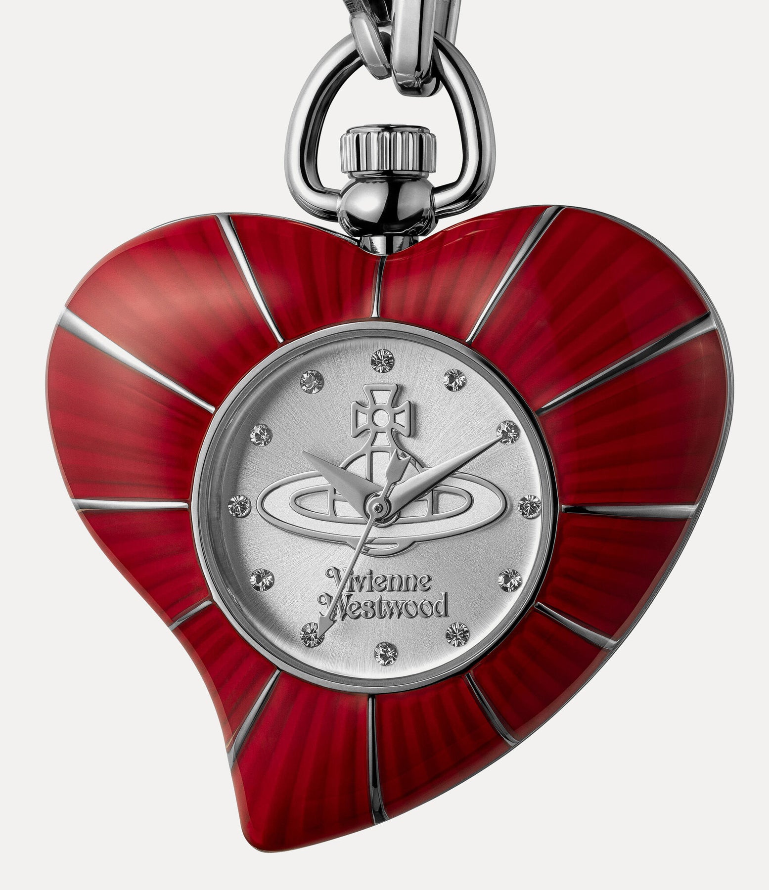 The Heart Pendant watch is crafted with a double-sided case, sculpted into the house’s iconic asymmetric heart silhouette. Suspended from a rolo chain, the piece is adorned with a crystal-encrusted safety pin motif, evoking Vivienne’s signature punk aesthetic, complete with a delicate silver sunray dial powered by specialist Swiss movement.