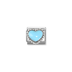 Original Composable Link for Nomination's Composable Classic Bracelet with Pastel Blue Heart symbol in sterling silver and blue enamel on stainless steel. Made in Italy.