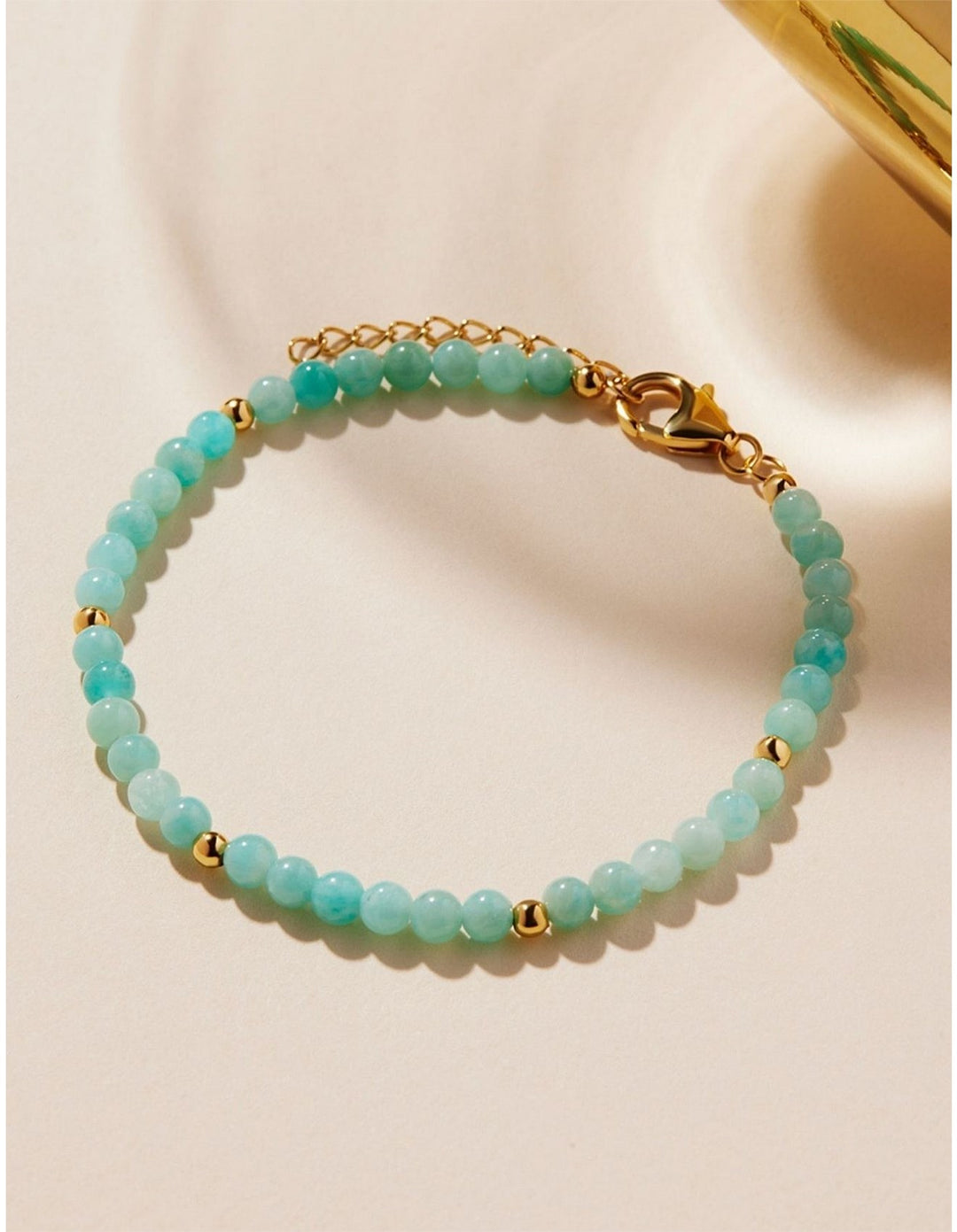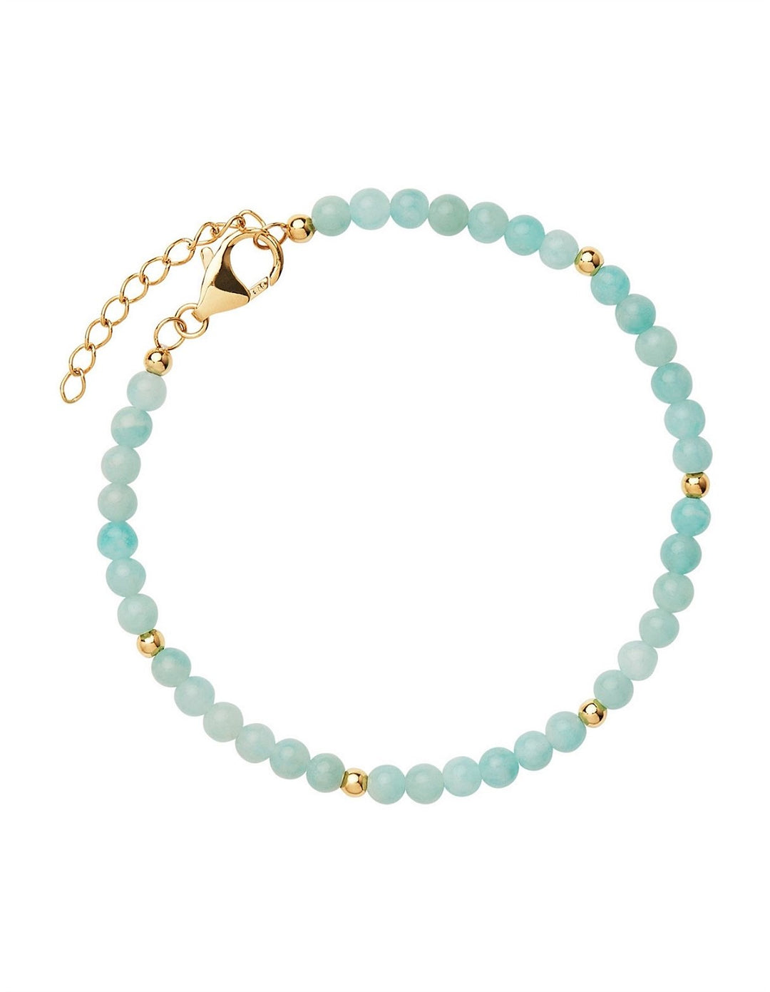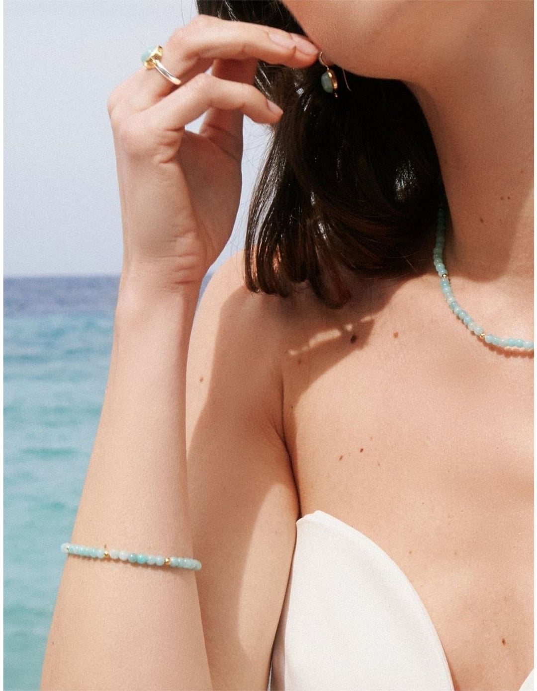 The Azzurro Bracelet is a stunning embodiment of Capri¿s mesmerising blue sea. Look closely, and you can almost see the sunlight glittering on the crystalline water. To capture this essence, our Jaipur gemstone artisans interweave gold accents amidst the amazonite cabochon beads. Amazonite is said to possess highly soothing properties, making this bracelet an exquisite way to manifest the colour and serenity of an endless summer.
