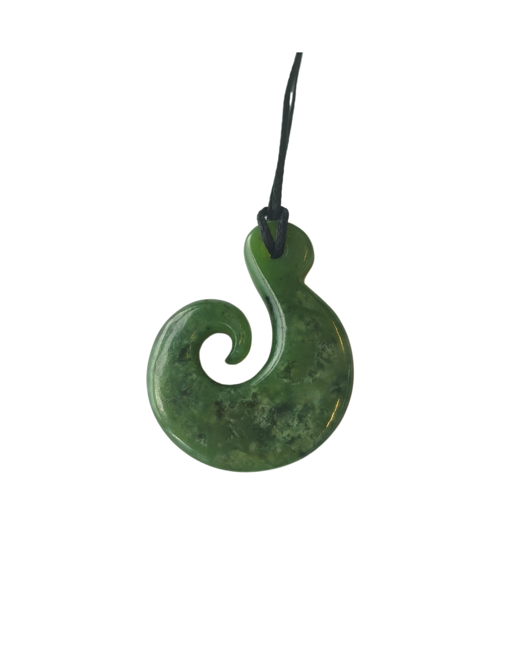 New Zealand Greenstone - Hei Matau / Fish hook with Koru - 40mm