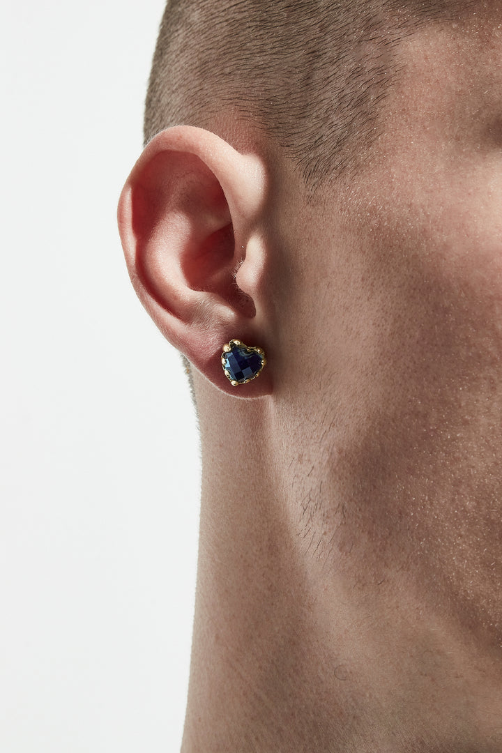 Tough-yet-beautiful. These stud earrings feature Stolen's new Mood Crystal, a contemporary twist on the iconic mood stone. Crafted from facet-cut natural crystal on a liquid crystal base, these unique colour-changing stones elevate the traditional glass design. The liquid crystal layer shifts in colour with temperature changes, reflecting the wearer's mood and energy.