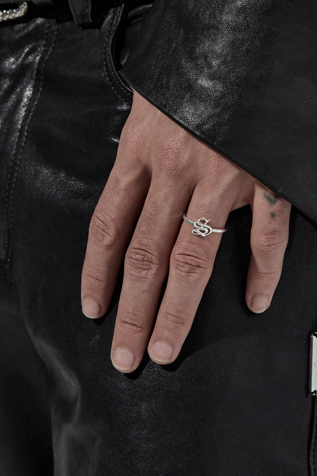 This bold charm ring by Stolen Girlfriends Club is cast from solid sterling silver and finished with a high-polish shine. The sculptural “S” motif rendered in Old English script, offers a subtle yet distinctive signature.