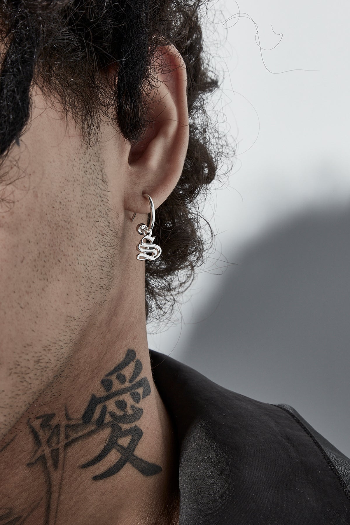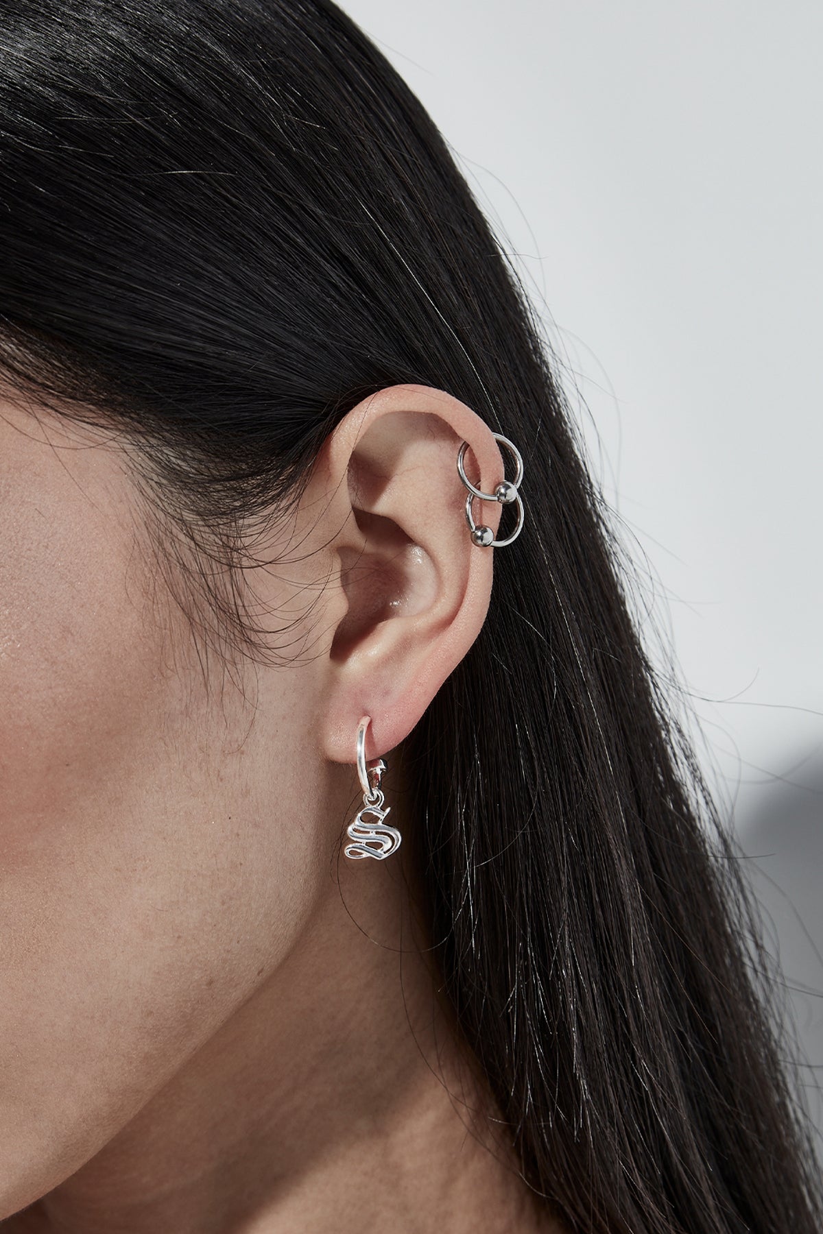 Stolen Girlfriends Club’s Anchor Sleepers are cast from solid sterling silver and finished with a high-polish shine. The sculptural “S” charms, rendered in Old English script, offer a subtle yet distinctive signature — an elegant accent for both every day and elevated looks.